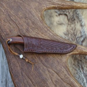 This custom MAB damascus hunter, knife is made by me, Mark Buzzell (MAB), right here in Maine. This great looking knife is 6-3/8 inches overall with a 3-1/4 inch by 1/8 inch thick 15/16 inch wide and is a 50 plus fold line pattern damascus steel blade. Knife blade is marked with my MAB logo as the maker of this fine knife. This knife was made from a bar stock damascus billet. The knife billets are shaped, ground, polished, oil quenched hardened and tempered to rockwell 57 to 58, then acid etched and then gun blued to help bring out the damascus pattern and given one final polish, all done by me. The handle on this one is made from stabilized cocobolo wood, what a handle this stuff makes. The knife bolsters and spacers were made from solid brass sheet and bar stock, I also used two custom pins in the handle to match the wood color. The handle will come alive in the sun showing real depth in the in the wood grain. I took the time to hand file the top of the handle in my “vine” pattern. All done by hand with a chain saw file and a small triangle file. I do not use a dremel tool like some knife builders, and then call it file work, so you can see I put a lot of time just in the file work on this one to make it a very collectible piece, or a good working knife that will only gain in value as time goes by. Your knife will come with the custom brown leather belt sheath made by Carl Thomas, your knife will also come with a black zip up knife case for storing your custom knife when it's not in use. All my custom knives come with a hand signed COA telling more about the knife, when it's was made time spent and so on. This one of a kind should last a good many lifetimes and would make a great gift for the knife collector that thought they had everything. $6.00 shipping by priority mail with delivery conformation and insurance. SORRY NO INTERNATIONAL SALES